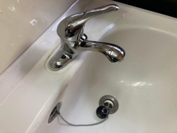 既存の水栓より小ぶりなため汚れの跡が見えてしまいましたが、擦り取って綺麗になりました。