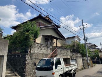 団地内の空き家で道路より3mほど高い位置に建っており玄関まで階段を上がらないといけません。