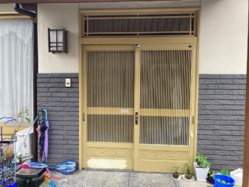 玄関サッシの千本格子引き戸の縦格子が外れて玄関を開閉する時にもう一方の引き戸と干渉して開かなかったりする様です。