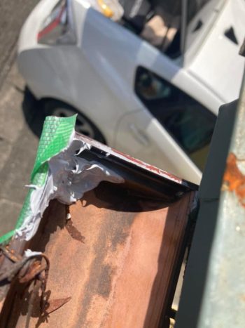 しかしいま写真を見ると屋根板金の先端も少し曲がっており塗膜が剥がれ錆が発生していますね。