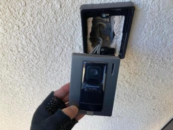 配線に問題がある可能性がありますので、元に戻して玄関ドアにてドアホンを使っていただき、門柱のドアホンは廃棄していただく事をお願いしました。