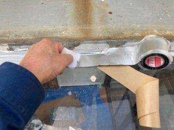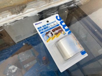 目視ではシーリングが切れていることが確認出来ないのです、怪しい箇所に防水テープを貼ってみました。