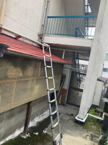 伸縮梯子で屋根の上ります。