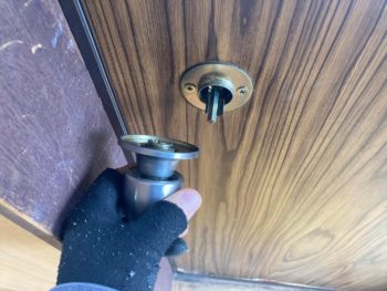岐阜県各務原市のご入居中の賃貸住宅の物置扉のドアノブの調子が悪く外れてしまうとのご連絡を受けて確認に行きました。