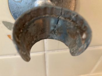 岐阜県各務原市の空き家を賃貸住宅されて当社で管理している物件のご入居者から浴室シャワーフックの金物にヒビが入ったと連絡があり確認しました。
