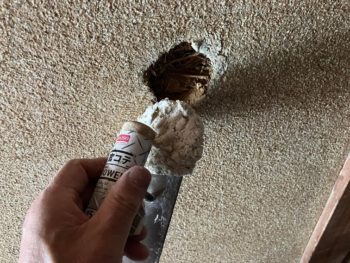 先日はドアの剥離を補修したり火災報知器を設置しましたが、今回は壁の穴の補修です。