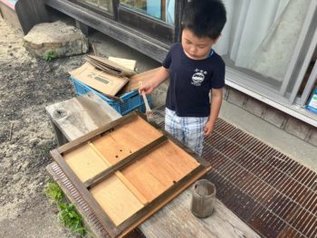 そしてお子様に木枠を塗装してもらいました。