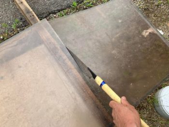 カーポートの屋根貼り替えでレスキューしたポリカ板があったので、それを大きさを測り、手ノコでカットしてはめ込みました。