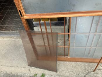 岐阜県各務原市の空き家を民泊に修理中の古民家えんがわで、室内ガラス戸の修理をしました。