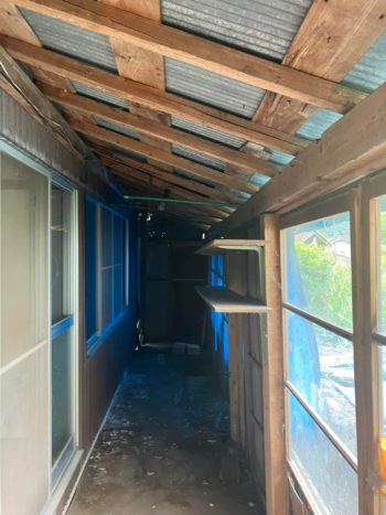 長年で溜まった不要なものを捨てていただき、空にして通風を確保していただくことで主屋本体の通風も良くしてもらいます。