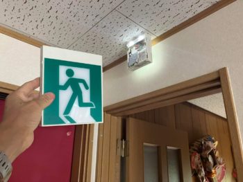 高齢者デイサービスの避難誘導灯を取り替え