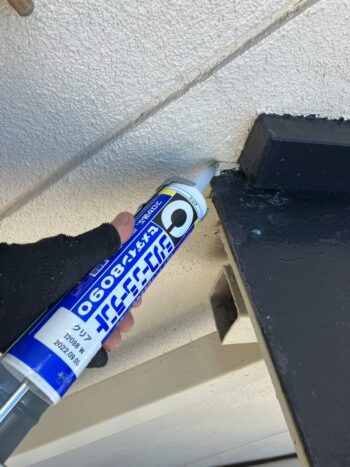 雨漏り原因と思われる隙間にシーリング材を注入