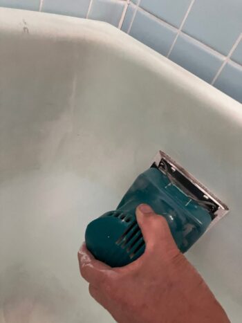 電動サンダーで浴槽を研磨