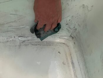浴槽特有の湾曲部分(カーブ)には、平らな電動サンダーがうまく当たりません。無理に当てようとしても、平面部分しか削れないのです。