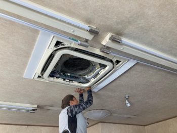 撤去後には天井に大きな穴が開いていますが、そこに新たなエアコンを取り付けます。