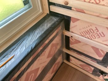 既設壁の内側に半柱を立てて2重壁として断熱しているため窓は出窓の様に枠材が広くなりますね。