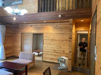 こじんまりとした建物ですが、内装のパイン材や吹き抜けデザインも素敵で経営オーナーの顔の見える大自然の中の民泊として十分可能性はあるとのことでした。