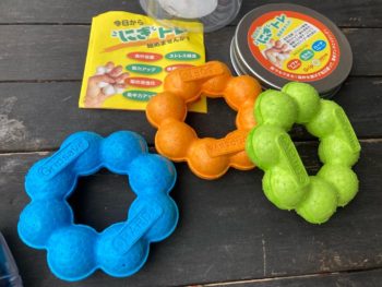 フラフープや縄跳び、握力を鍛えるにぎトレと2kgのウェイトです。