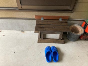 他にも細かい点で勝手口の踏み台が動いて転倒する危険性があるので基礎に固定して動かなくして安全性を高めました。
