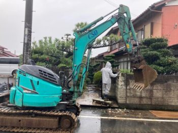 岐阜県各務原市の高齢者おひとりでお住まいで、空き家予備軍のブロック塀の解体工事が始まりました。
