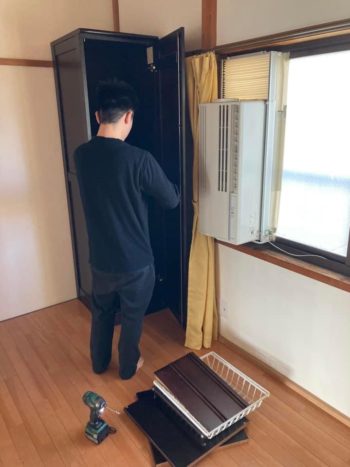 搬入したタンスを借主の若者が組み立てしました。