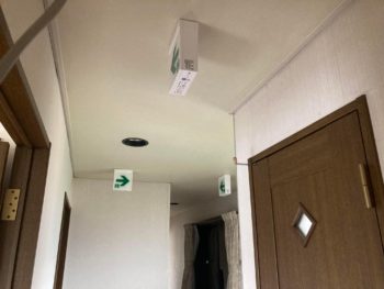 各部屋にはシリンダー錠を取り付けて、また避難誘導灯も取り付けが終わっていましたが、こんなに必要なのかというほど設置されています。