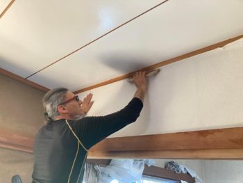 和室の天井は塗装し、和室壁にクロスを貼ってました。