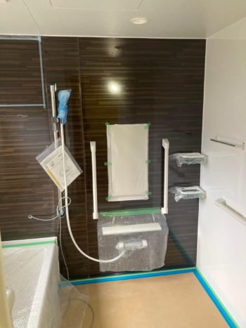 岐阜県各務原市の空き家を高齢者デイサービスに改修中ですが、ユニットバス組立が完成しました。