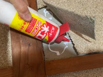 繊維壁の剥離を木工ボンドで接着しました。