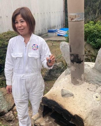 燃焼炉の一部の耐火レンガが外れてしまいましたが、再度接着して直しました。