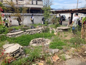 借家のお庭も廃棄物のアートに。