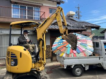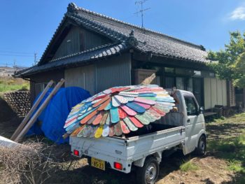 木工アーティストの工房から作品を軽トラで搬出