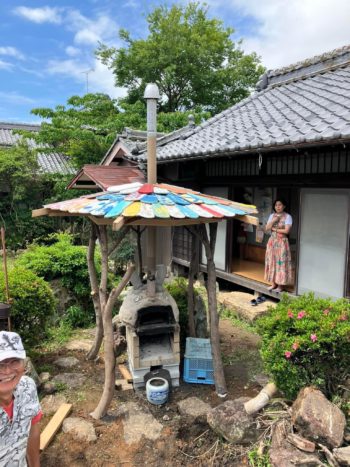 岐阜県各務原市の空き家を活用したシェアスペース&キッチンの古民家えんがわに作ったトトロのピザ窯に屋根を設置しました。