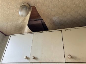 床壁天井を重ね貼りしたり、塗装したりして現状回復工事を進めていますが、まだ雨漏り後の修理など残っています。