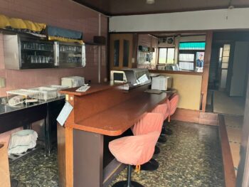 お店をやっていた部分はそのままカウンターも残して宿泊者も楽しめる空間にするとおもしろいかも。