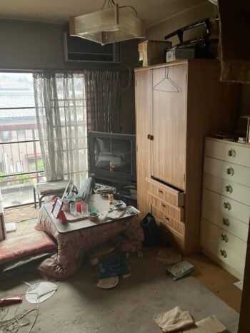 すでに何室かを再生に着手していますが、残地物が満載で未着手の住戸もあり見学させていただきました。