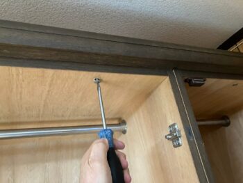 そして扉に着いたヒンジ金物をセットしてビス固定して調整しました。