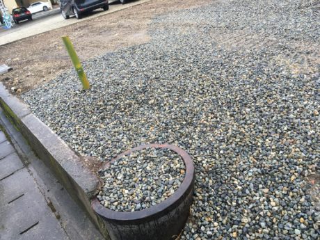 川砂利で埋めていますが4t車の砂利では不足のため軽自動車でも追加で運搬しました。