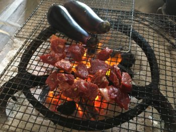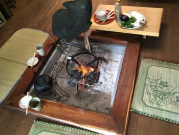 家族で囲炉裏を囲んでの焼肉BBQです。
