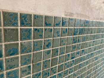 オーシャンブルーの素敵なタイル。磨けば光るか。