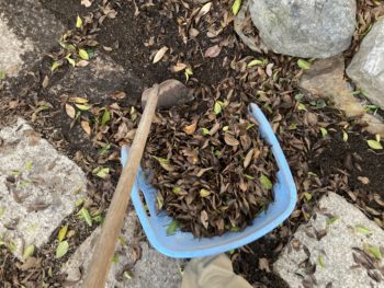 山盛りになった葉っぱの山は腐葉土に。