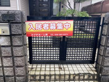 岐阜市福光西の豪邸が転居により空き家になり、清掃や修繕が終わり入居者の募集看板を設置しました。