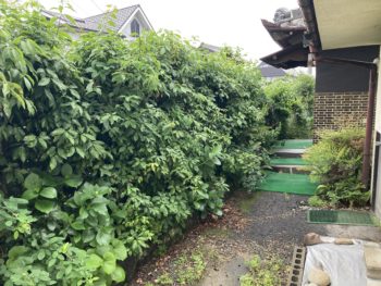 室内は雨漏りなど異常が無く良かったのですが庭木が伸びて玄関までのアプローチも邪魔になったので伸びた枝をカットしました。