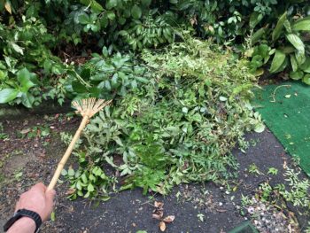 剪定した枝葉を集めて緑ゴミの日に出します。
