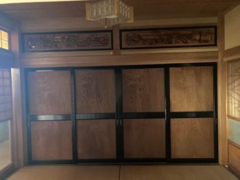 一枚板の4本建具と彫刻欄間は素晴らしいです。
