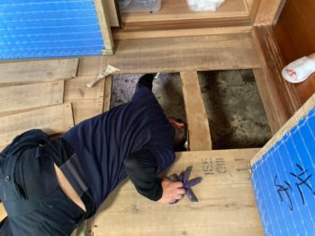 畳と床板をめくり蟻害を確認