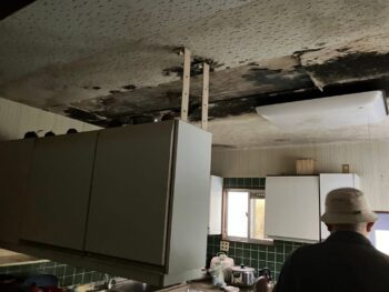 キッチンに大きな雨漏りで天井が腐食