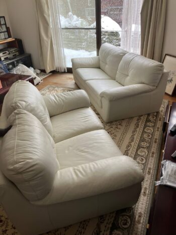3人掛けと2人掛けのソファの白い素敵なソファ軽トラに積んで運び出しました。