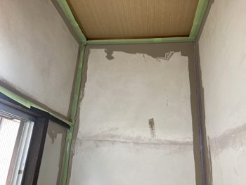 少し前に壁のひび割れをパテで補修して完走後にサンディングを行ってからの塗装です。