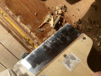 また中段には新聞が糊で接着されていましたのでシール剥がし材を吹き付け糊を溶かし、ヘラで擦り取りました。